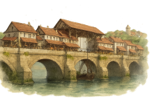 This large, grey stone bridge in the southern Kalehaven neighborhood connects the rest of the city with Sevso Island. The large span is full of shops and eateries built on either side of the roadway. The middle of the bridge has a semi-permanent wooden covering that can be removed when a sea-going ship needs to pass.